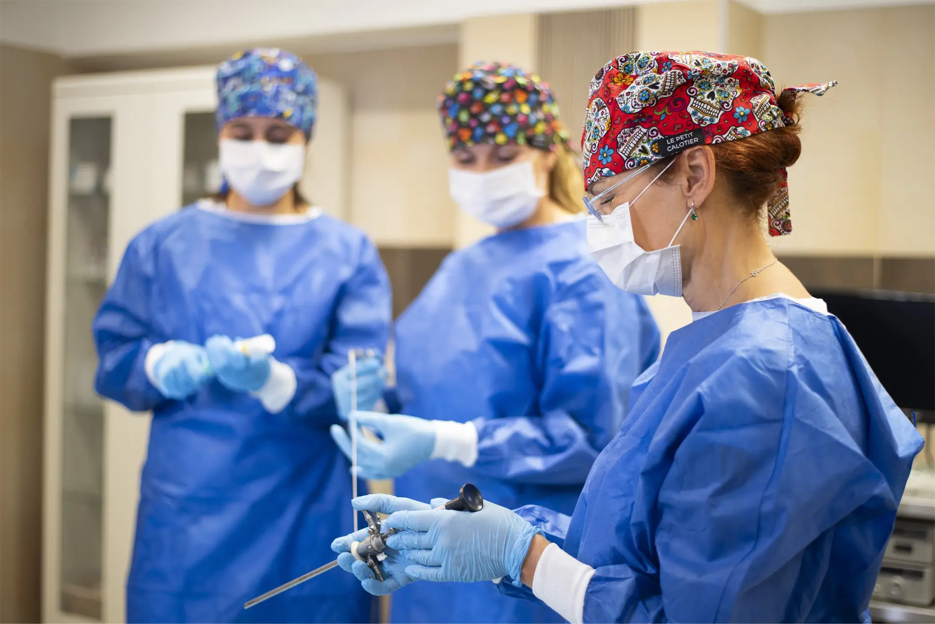 Součástí ordinace je zákrokový sál pro výkony jednodenní chirurgie – pro klientky všech pojišťoven včetně hysteroskopií, ukončení těhotenství na žádost klientky, kyretáží, léčby onemocnění Bartholiniho žlázy apod., vše v ambulantním režimu. Výkony provádíme v krátkodobé celkové anestezii. Ošetřujeme i klientky registrované v jiných gynekologických ordinacích. Nejste-li registrována v naší ordinaci, pak se prosím k těmto výkonům přijďte objednat osobně, objednávat se k této konzultaci nemusíte.